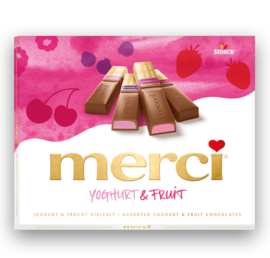 Een klein bedankje om te geven, om te delen of om zelf van te genieten: de lekkerste merci chocolade in de Limited Edition “Yoghurt & Fruit”.