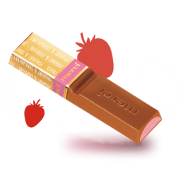 Een klassieker: de smaak van sappige aardbeien in een milde yoghurt crème, omhuld in fijne melkchocolade