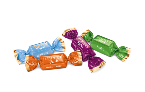 merci Petits - een mix van kleine, maar fijne chocolaatjes van merci in de smaken mokka-room, melkchocolade, amandel, pure chocolade, hazelnoot-crème en crunch, praliné, witte chocolade-crunch